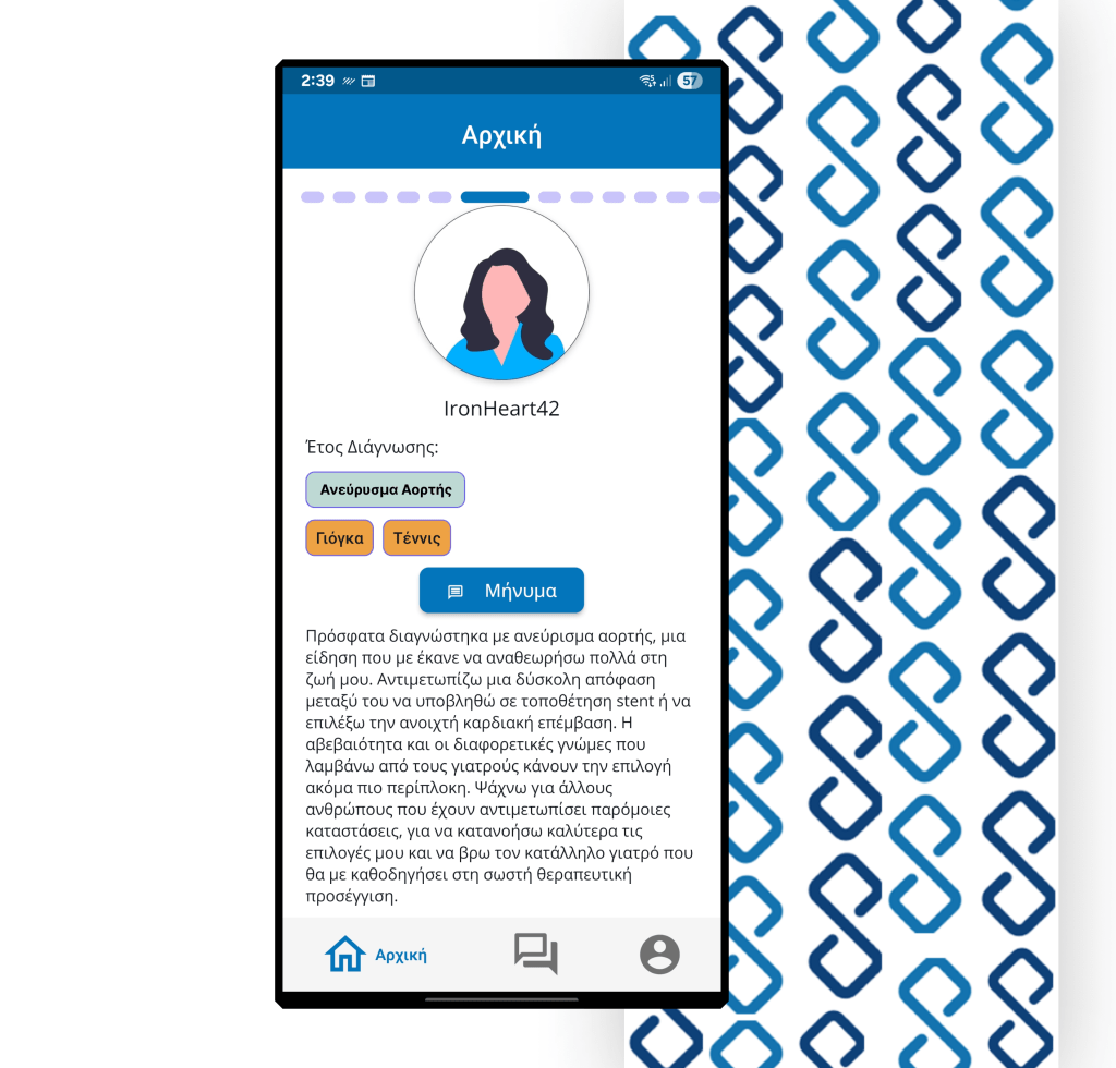 Στόχος μας είναι να βρίσκεις αξιόπιστες απαντήσεις και πρακτικές λύσεις για την καθημερινότητά σου. Γι’ αυτό δουλεύουμε ώστε, εκτός από κοινότητες και ομάδες, να υπάρχει και διασφάλιση εγκυρότητας μέσα από verified προφίλ — ασθενών, φροντιστών και σταδιακά επαγγελματιών γύρω από όλους τους τομείς που σε απασχολούν. Έτσι ξέρεις πάντα με ποιον μιλάς, αλλά και λαμβάνεις αξιόπιστες πληροφορίες.